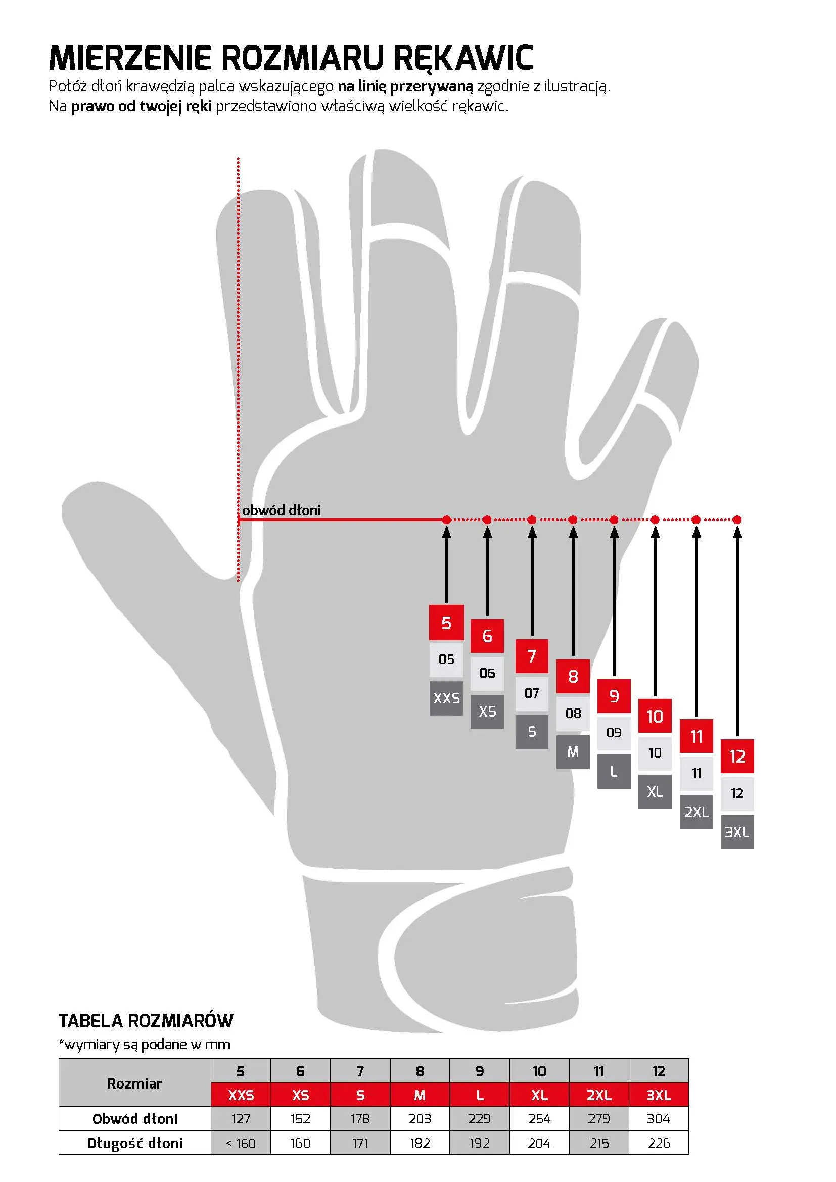 Tabela rozmiarów rękawic