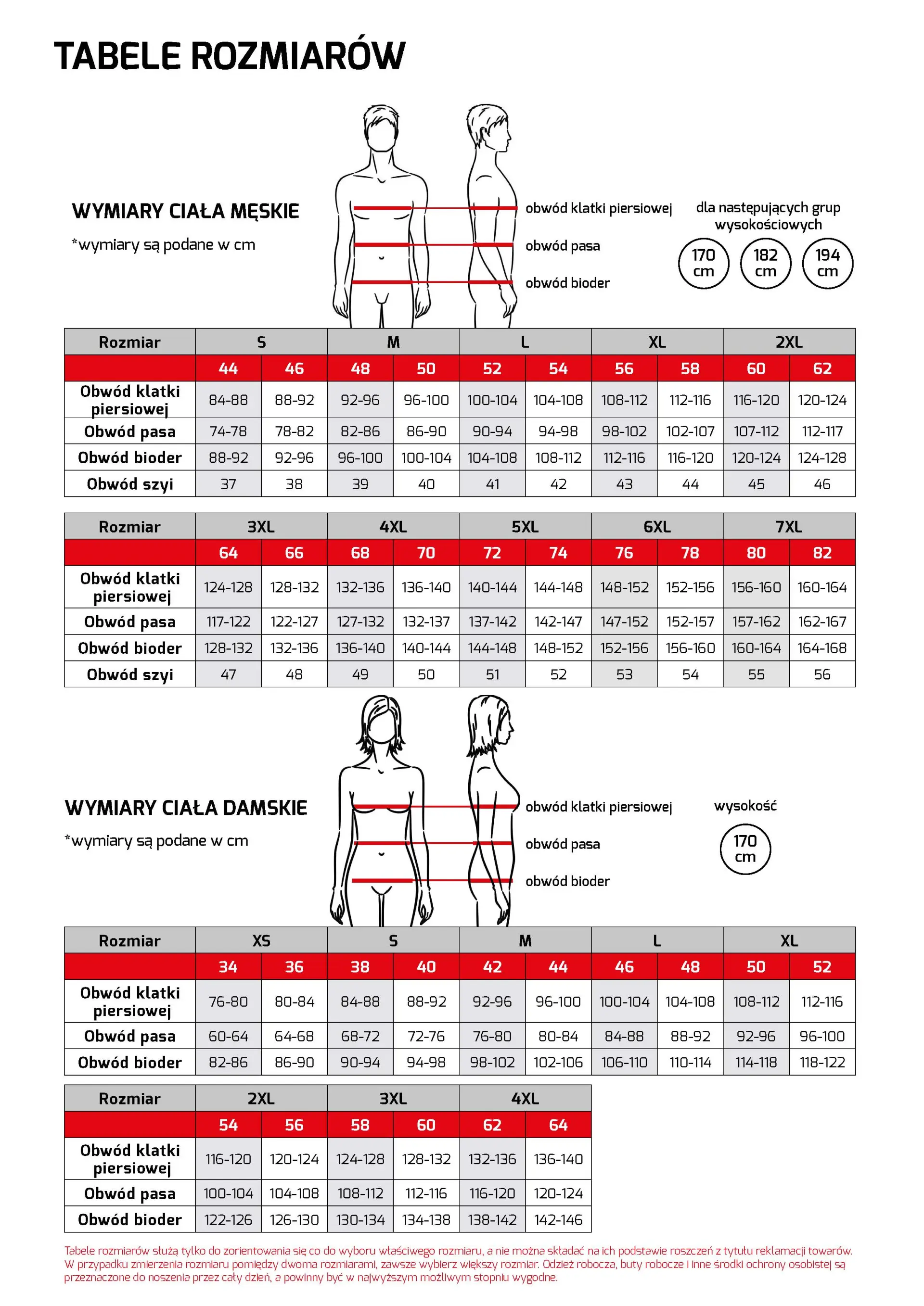 Tabela rozmiarów ubrań